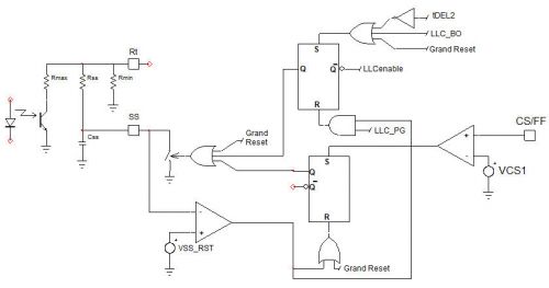 2. 完整軟啟動(dòng):SS引腳接地條件是:啟動(dòng),或CS/FF高于VCS1(1 V),或BO激活,或tDEL2結(jié)束。僅在VSS低于VSS(RST)時(shí),SS引腳上的開關(guān)被釋放開路,執(zhí)行從啟動(dòng)(重啟)開始的完整軟啟動(dòng)。