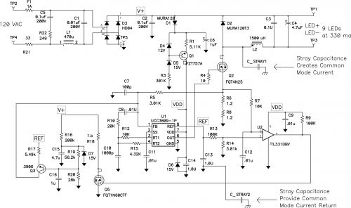 非隔離式電源的共模電流可能成為一個(gè)電磁干擾 (EMI) 源,您是否曾經(jīng)消除過它呢?在一些高壓電源中,例如:LED 燈泡所使用的電源,您可能會(huì)發(fā)現(xiàn)您無法消除它們。經(jīng)仔細(xì)查看,發(fā)現(xiàn)非隔離式電源與隔離式電源其實(shí)并沒有什么兩樣。開關(guān)節(jié)點(diǎn)接地寄生電容,產(chǎn)生共模電流。