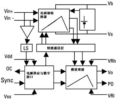 電機(jī)電流是通過使用一個(gè)外部分流晶體管來感測(cè)的,HVIC可將小的差分電壓(±250mV)通過一個(gè)精密電路轉(zhuǎn)換為時(shí)間間隔,這個(gè)精密電路的紋波去除功能有助于顯示小的群延遲。時(shí)間間隔是快速瞬變的,會(huì)被帶到輸出端。這樣就可以獲得與測(cè)量電流相對(duì)應(yīng)的模擬輸出電壓,以便與外部參考電壓相比較,最大采樣率為40kSPS。對(duì)于頻率高達(dá)20kHz的非對(duì)稱PWM調(diào)制來講,這個(gè)采樣速率富富有余。20kHz時(shí)的最大延遲小于7.5s,對(duì)于被用來IGBT保護(hù)的電流感測(cè)信號(hào)來說也夠快了。圖4是電流感測(cè)電路。