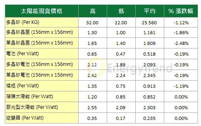 EnergyTrend最新太陽能市場價格調查
