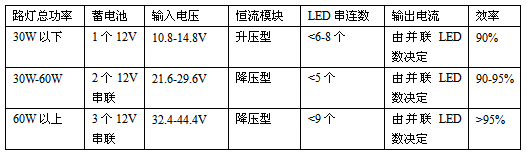 3.1 蓄電池只有幾種規(guī)定的電壓,12V是最常使用的,因為它是汽車電池的標準電壓。24V就需要用兩個串聯。36V就更少見了。為此,在太陽能LED路燈中經常需要采用升壓型的恒流驅動模塊。這就影響了恒流模塊的效率。