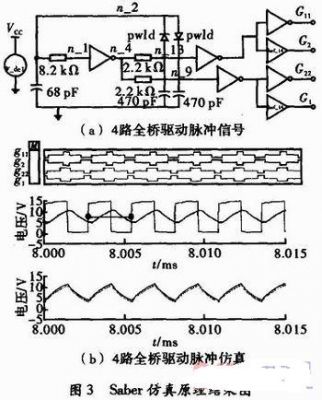 4路PWM生成電路的Saber仿真原理圖及仿真結(jié)果如圖3(a)和圖3(b)所示。由仿真結(jié)果可以看出,4路PWM脈沖能夠滿足共用全橋拓?fù)涞目刂埔蟆?br />