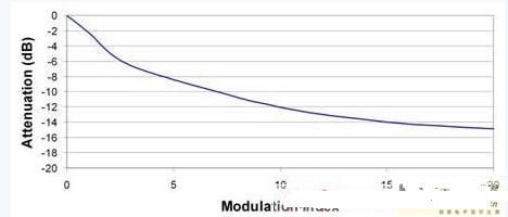 圖2:更大的調(diào)制指數(shù)可以進一步降低峰值EMI性能。