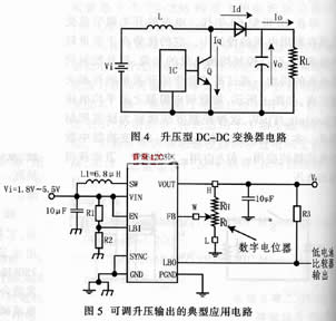 圖4所示為升壓型DC-DC變換器的典型電路,通過控制器IC延長啟動晶體管的時間,以增加電感器的峰值電流來達到升壓目的。傳輸作用的計算公式為