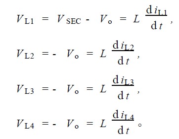 通過以上分析可以看出, 倍流整流結(jié)構(gòu)的二次側(cè)2 個濾波電感電流在濾波電容上相互疊加, 從而使得輸出電流紋波變得相當(dāng)小。