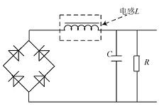 即功率因數(shù)校正( Pow er Factor Correct ion, PFC)是指有效功率與總耗電量( 視在功率) 之間的關(guān)系,也就是有效功率除以總耗電量( 視在功率) 的比值。無(wú)源PFC 是指不使用晶體管等一些有源器件組成的校正電路,一般情況下由二極管、電阻、電容和電感等無(wú)源器材組成。本文的PFC 主要是在整流橋堆和濾波電容之間加1 個(gè)電感, 具體原理如圖3 所示,利用電感上的電流不能突變的特性來(lái)平滑電容充電強(qiáng)脈沖的波動(dòng),改善電路中電流的畸變,并且利用電感上的電壓超前于電流這一特性來(lái)補(bǔ)償濾波電容電流超前電壓的特性, 使功率因數(shù)和電磁干擾都得以改善。