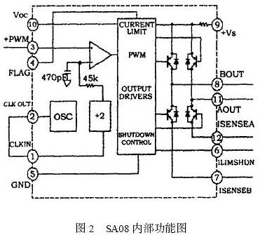 SA08外觀和引腳分布圖見圖1;內(nèi)部功能圖見圖2 。