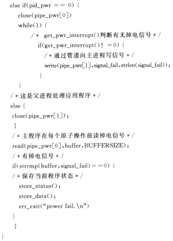 在μClinux系統(tǒng)下,掉電信號的捕捉有兩種方式可以進行。一種是運用系統(tǒng)調用,即采用void(*signal(intslg,void(*func)(int)))(int)。這個函數可以為特定的中斷信號安排制訂的執(zhí)行函數,用參數func傳遞。在μCllnux中,共有31個系統(tǒng)中斷信號,其中掉電信號為SIGPWR。假設掉電中斷服務處理程序為void interrupt-service(int),則中斷服務與信號關聯的方式為:signal(SIGPWR,interrupt_service)。這種方式充分利用系統(tǒng)調用,實現簡單。在掉電保護方案設計初期也是采用這種機制。但事實證明這種機制并不可靠,其原因是Linux內核產生和管理信號的機制并不完善,有可能存在信號丟失。查閱有關Unix或L1nux的相關資料,可以發(fā)現這種狀況也普遍存在于某些其他版本的Linux和Unix中。