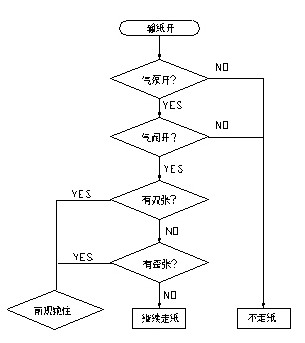 印刷機整體的電氣設(shè)計還是比較復(fù)雜的,對時間的要求也很嚴(yán)格。在機器的很多地方裝有接近開關(guān),用來檢測不同的時間點。在印刷過程中,走紙的好壞是影響機器質(zhì)量的一個重要環(huán)節(jié)。所謂紙走的好壞,指的是無歪張,雙張等現(xiàn)象,如果有歪張,雙張現(xiàn)象,在高速情況下,就會將走壞的紙,卷入機器內(nèi),從而破壞膠皮,給用戶帶來很大損失。此過程流程如下: