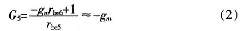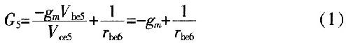 這是一個負(fù)電導(dǎo)。正電阻吸收能量,負(fù)電阻提供能量,而此處VQ5的集電極到發(fā)射極的負(fù)電導(dǎo)表示晶體管提供能量轉(zhuǎn)換,將直流電源的能量轉(zhuǎn)換為交流能量。同理,VQ6的集電極到發(fā)射極(即BM兩端)的等效電導(dǎo)為-gm。則單端口網(wǎng)絡(luò)AB的輸入電阻是VQ5、VQ6兩端發(fā)射極輸出電阻的串聯(lián),即