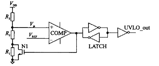 圖3 用外部遲滯實(shí)現(xiàn)的欠壓鎖定電路