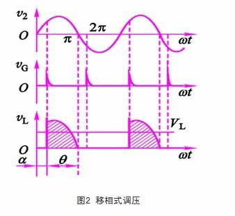 (2)q:導(dǎo)通角。每半個(gè)周期晶閘管導(dǎo)通角度。控制角越大,導(dǎo)通角越小,它們的和為定值α+q=p。它改變交流電的平均電壓,其平均電壓是可控的、平滑變化的。