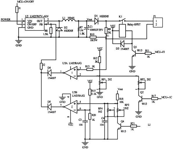 在輸出口正負(fù)端各接有一個(gè)光耦,電池沒(méi)有接入時(shí)光耦傳回的信號(hào)為兩個(gè)低電平,當(dāng)有電池接入時(shí)其中一個(gè)光耦傳回的信號(hào)為高電平。當(dāng)電池正接時(shí)輸出端口正端的光耦傳回的信號(hào)為高電平,負(fù)端口傳回的信號(hào)為低電平。當(dāng)電池反接時(shí),輸出端口負(fù)端的光耦傳回的信號(hào)為高電平,輸出端口正端傳回信號(hào)為高電平。MCU通過(guò)判斷光耦傳回的電平高低就可以判斷電池接入與否以及電池是否反接。