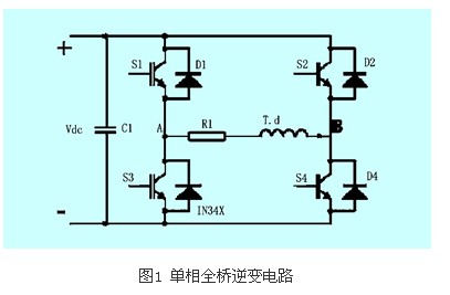 全橋逆變器的主電路圖見(jiàn)圖1。由于控制方式的不同,它可以有很多種工作方式,常用的工作方式為: