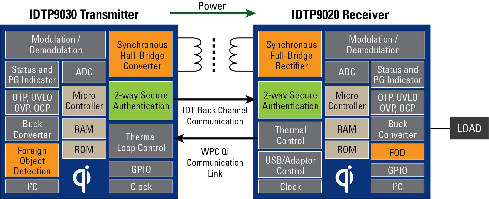 IDTP9030 和 IDTP9020 提供了無線電源發(fā)送器和接收器解決方案,專為滿足無線充電聯(lián)盟(WPC)的 Qi 標(biāo)準(zhǔn)而設(shè)計,可保證與其他滿足 WPC Qi 標(biāo)準(zhǔn)器件的互操作性。發(fā)送器和接收器均能夠進(jìn)行“多模式”操作,可支持 Qi 標(biāo)準(zhǔn)和專用格式以增加功能、改進(jìn)安全和提高功率輸出能力。內(nèi)置的協(xié)議檢測可實現(xiàn) Qi 與專用模式間的動態(tài)轉(zhuǎn)換,從而實現(xiàn)平穩(wěn)過渡和可靠的用戶體驗。這些器件可用于大量移動應(yīng)用以進(jìn)行便利和輕松的電池充電。