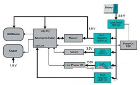當(dāng)電源電壓比工作電壓高得多時(shí),通過開關(guān)DC/DC轉(zhuǎn)換器能獲得更好的效率,在將一個直流電壓轉(zhuǎn)換為另一個直流電壓時(shí),它的能量能暫時(shí)存儲在電感磁場,然后釋放給負(fù)載。便攜式開關(guān)調(diào)節(jié)器以500kHz~3MHz的頻率工作。DC/DC開關(guān)轉(zhuǎn)換器有多種拓?fù)浣Y(jié)構(gòu)。內(nèi)置開關(guān)元件的同步降壓型調(diào)節(jié)器用于輸出電壓遠(yuǎn)低于輸入電壓的場合,在便攜式系統(tǒng)中最為常用。用降壓調(diào)節(jié)器替換LDO可以提高系統(tǒng)效率。例如,當(dāng)利用LDO將系統(tǒng)電壓從3.6V降至1.2V,為負(fù)載電流為300 mA的微處理器內(nèi)核供電時(shí),LDO效率約為1.2V/3.6V×100%=33%,67%的輸入功率以熱量形式損失。為了提高效率并降低工作溫度,應(yīng)當(dāng)用ADP2108等降壓轉(zhuǎn)換器取代LDO.降壓轉(zhuǎn)換器能將能量儲存在電感的磁場中,因而效率更高。用過使用ADIsimPowerTM設(shè)計(jì)工程師會發(fā)現(xiàn),在相同條件下ADP2108的效率為80%,比LDO提高47%.然而ADP2108尺寸較小,僅使用兩個去耦電容和一個1μH芯片電感,幾乎可以直接取代LDO.,低靜態(tài)電流、使能功能以及負(fù)載電流較小情況下的省電模式,都是選擇變壓轉(zhuǎn)換器的性能指標(biāo)。