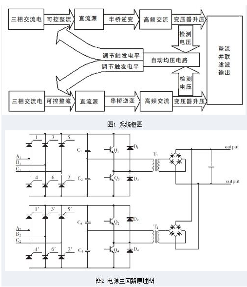 電源的系統(tǒng)框圖及主回路原理圖別如圖1 和圖2 所示。