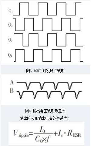 鑒于以上問(wèn)題,本文采用雙路電源并聯(lián)輸出的方法得到低紋波直流。在開(kāi)關(guān)管頻率受限的今天,本方法可以在頻率較低的情況下得到低紋波直流。