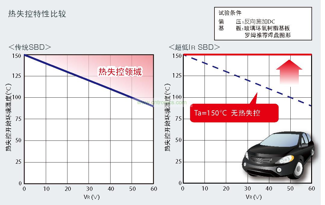 實現(xiàn)了超低IR,因此Ta=150℃也不會發(fā)生熱失控,可在車載等高溫環(huán)境下使用。