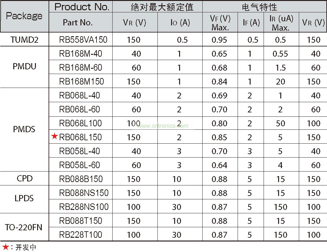 高溫環(huán)境下使用的車載、電源設備的電路中,由于擔心熱失控,因此普遍采用整流二極管和快速恢復二極管(FRD)。但是由于整流二極管和FRD的VF值較高,因此很難實現(xiàn)EV和HEV所要求的更低功耗。在這種背景下,VF值較低的肖特基勢壘二極管(SBD)在高溫環(huán)境下亦可安全使用的產品的開發(fā)需求逐年高漲。