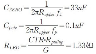 交叉頻率=1kHz;需要的相位裕度=70o;交叉頻率處增益衰減Gfc=-20dB;交叉頻率處的相位=-55o,K 因子計(jì)算為:k=4.5;fz=222kHz;fp=4.5kHz;G=10;CTR=0.8.