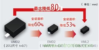 此次,產(chǎn)品陣容中新增了更加小型的VML2封裝(1.0×0.6mm)。通過這些產(chǎn)品,將非常有助于便攜設備節(jié)省空間。