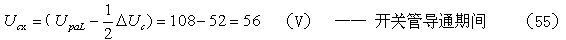 這里順便說明一下,為什么(53)式中的分流系數取值為0.5,而不是其它數值。因為,分流系數r的取值范圍是0~1,它是一個動態(tài)系數,它的大小,除了與輸入電壓和輸出功率和RCD電路中電容、電阻的大小有關外,還與開關管的關斷時間,以及電流大小有關系。