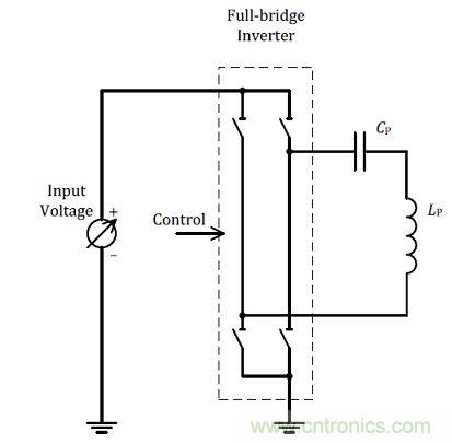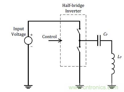 另外一個修正諧振偏差的方式為變壓式,參考圖(四)所示利用改變驅(qū)動電壓的方式進(jìn)行,當(dāng)諧振點偏高(電容或電感值偏?。r就降低驅(qū)動電壓使功率輸出降低到所設(shè)計的預(yù)定值,反之諧振點偏低時就反向操作。可以看出利用變壓式的調(diào)整方式,修正容許空間相較于變頻式較為狹窄,主要為改變電壓的修正幅度沒有改變頻率方式的大,由于反應(yīng)較緩所以也比較好控制調(diào)整幅度。