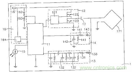 前段所提當(dāng)功率加大后因為受電端上的訊號調(diào)制用負(fù)載電阻需要吸收較大的電流會產(chǎn)生功率損耗問題所以較為不可行,且為了反饋訊號容易被辯識需要有較大的反饋量使線圈上有較大的調(diào)制深度,這個設(shè)計下需將使接收端上的負(fù)載電阻設(shè)定較低的阻抗用來吸收更多的能量產(chǎn)生反饋,在這個循環(huán)下要提升感應(yīng)式電源供應(yīng)器之可用功率將遇到瓶頸。所以有廠商提出另一個電容式訊號調(diào)制方法。由香港ConvenientPower HK Ltd申請之美國專利公開號20110065398 UNIVERSAL DEMODULATION AND MODULATION FOR DATA COMMUNICATION IN WIRELESS POWER TRANSFER (用于無線電力中的數(shù)據(jù)調(diào)制與解調(diào)方法),參考圖(九)說明其內(nèi)容所提的在先前設(shè)計在受電端產(chǎn)生調(diào)制反饋能量的負(fù)載電阻改成電容,其因為采用電容調(diào)制時會在供電端發(fā)射線圈上產(chǎn)生電流與電壓相位差變化,所以可以利用分析此變化來進(jìn)行譯碼;這樣的設(shè)計可以不需要產(chǎn)生很大的調(diào)制深度即可達(dá)到反饋數(shù)據(jù)的目的,所以即使在較長的調(diào)制期間并不會消耗過多的能量。