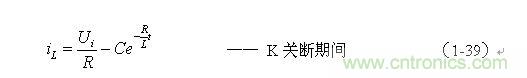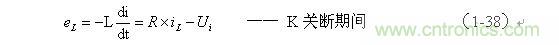 式中的負號表示反電動勢eL的極性與(1-35)式中的符號相反,即: K關(guān)斷期間電感L產(chǎn)生電動勢的方向與K接通期間電感L產(chǎn)生電動勢的方向正好相反。
