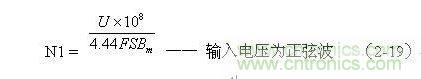 (2-18)式雖然是用于計(jì)算雙激式開關(guān)變壓器初級線圈N1繞組匝數(shù)的公式,但只需把式中的某個(gè)別參數(shù)稍微進(jìn)行變換或修改,同樣可以用于計(jì)算其它波形電源變壓器初級線圈匝數(shù)的公式。