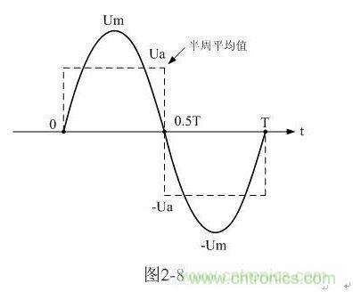 順便說明,這里的半周平均值,并不是一般意義上的正、負(fù)半周波形完全對稱交流電壓正半周、或負(fù)半周的平均值,這里的半周平均值是泛指整個(gè)周期中的正半波電壓或負(fù)半波電壓在半個(gè)周時(shí)間內(nèi)的平均值。如圖2-9所示。另外,(2-19)、(2-20)式中的半周平均值Ua和Ua-與第一章中(1-70)、(1-71)式定義的半波平均值Upa和Upa-也稍有一點(diǎn)差別,Ua和Ua-與Upa和Upa-的差別,主要是在分母上。