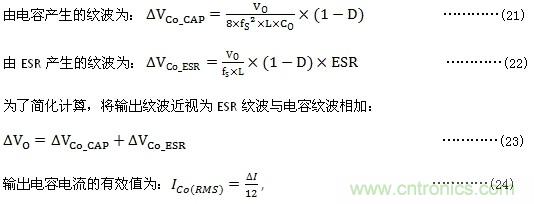 輸出電容紋波主要由兩部分組成,一部分為電容ESR產(chǎn)生的紋波,另一部分為電容產(chǎn)生的紋波。