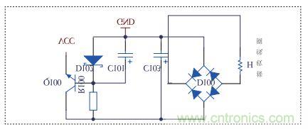 如圖3,當(dāng)感應(yīng)線圈靠近發(fā)射線圈時(shí),就會(huì)產(chǎn)生感應(yīng)電流,經(jīng)過全波整流后,根據(jù)不同的電子產(chǎn)品的充電電壓,可選擇不同的穩(wěn)壓二極管穩(wěn)壓,再經(jīng)三極管Q100放大電流后供給不同電子產(chǎn)品充電。