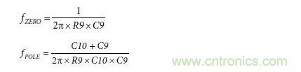 Type II補償網絡的零點和極點由下式得出: