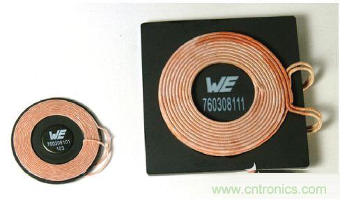 用于標(biāo)準(zhǔn)5W WPC應(yīng)用的典型線圈是A11型線圈。這種環(huán)形線圈直徑約50mm,背后有厚厚的鐵氧體屏蔽層。雖然這種線圈已在具有多種類型接收器的大量應(yīng)用中經(jīng)過了測試,但它最適合較高的功率級(3W~5W)。對于較低功率和縮小范圍的接收器,許多線圈尺寸可減小。