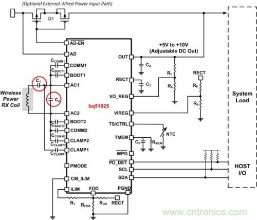 圖4.無線充電接收器和關(guān)鍵諧振電容器