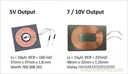 雖然理想狀態(tài)是最大限度地減少線圈的直流電阻(DCR),但是在較高的輸出電壓情況下,允許稍微地增加DCR來應(yīng)對較低的電流。圖7顯示的是兩個典型RX端線圈。所有RX和TX線圈組裝時需要背面屏蔽材料。