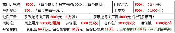 1、各種展位價格表(圖片僅供參考)
