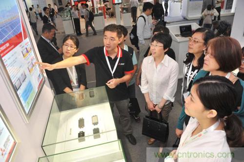 圖三:三菱電機(jī)技術(shù)人員為媒體解說(shuō)IGBT等系列產(chǎn)品