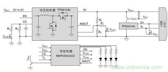 移動電源的核心是升壓轉(zhuǎn)換器,其作用是將電池電壓轉(zhuǎn)換為用于便攜式設備的5V。參考設計使用高度集成的TPS61236同步升壓轉(zhuǎn)換器以超過95%的功率向便攜式設備提供高達2.4A的電源。如此高的功率確保該便攜式設備可接收幾乎所有的儲存電能,并盡可能降低移動電源相對應的溫升幅度(由于轉(zhuǎn)換的功率損耗)。2.5mm&TImes;2.5mm規(guī)格的集成電路實現(xiàn)了較小的總形狀系數(shù),允許使用容量更大的電池。