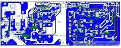 A)功率大電流地線與控制回路地線共用同一走線,由于PCB覆銅線并非理想導(dǎo)體,它總是可以等效成電感或電阻,當(dāng)功率電流流過了和信號控制回路共用的PCB線,在PCB上產(chǎn)生電壓降落,特別是采用多點接地時,由于控制電路各節(jié)點分散在不同位置,功率電流引起的電壓降對控制電路疊加了擾動,使電路發(fā)出噪音,這問題通常采用單點接地可以得到改善。