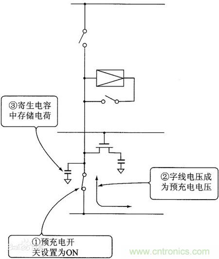 寫操作時,寫選擇線為“1”,所以Q1導通,要寫入的數(shù)據(jù)通過Q1送到Q2的柵極,并通過柵極電容在一定時間內保持信息。