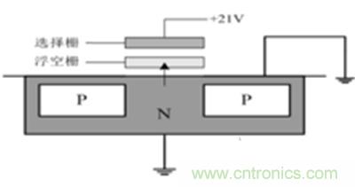 EPROM是指其中的內容可以通過特殊手段擦去,然后重新寫入。其基本單元電路如下圖所示。常采用浮空柵雪崩注入式MOS電路,簡稱為FAMOS。它與MOS電路相似,是在N型基片上生長出兩個高濃度的P型區(qū),通過歐姆接觸分別引出源極S和漏極D。在源極和漏極之間有一個多晶硅柵極浮空在絕緣層中,與四周無直接電氣聯(lián)接。這種電路以浮空柵極是否帶電來表示存1或者0,浮空柵極帶電后(例如負電荷),就在其下面,源極和漏極之間感應出正的導電溝道,使MOS管導通,即表示存入0.若浮空柵極不帶電,則不能形成導電溝道,MOS管不導通,即存入1。