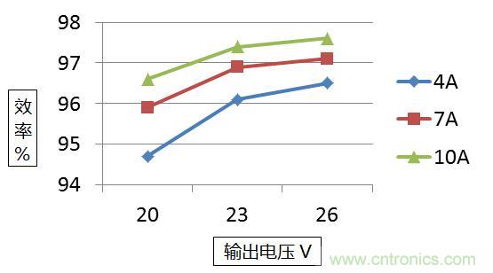 輸出電流在4A/7A/10A的情況下,輸出紋波電流都很小。