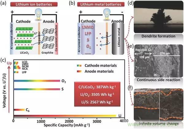 圖1.離子電池和鋰金屬電池示意圖以及失效機理