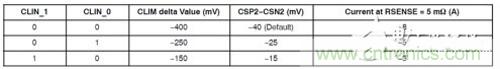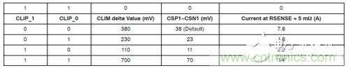 表2:5 m檢測電阻對應(yīng)的峰值過流保護值(反向過流保護)