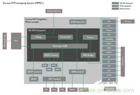 圖2:在MPS2+中實(shí)施的Cortex-M3 DesignStart