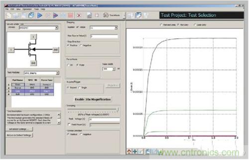 對(duì)這類應(yīng)用,非常重要的一點(diǎn)是要有一整套測(cè)試功能,包括脈沖、DC和C-V。采用器件專用詞匯的軟件(而不是儀器專用詞匯)可以幫助簡(jiǎn)化測(cè)量。這些軟件還可以簡(jiǎn)化多臺(tái)源測(cè)量單元(SMU)儀器之間的交互,用戶可以把重點(diǎn)放在被測(cè)器件上,而不是測(cè)量?jī)x器上。