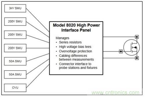 在對(duì)功率半導(dǎo)體器件執(zhí)行全面的DC I-V和C-V測(cè)試時(shí),為減少遇到的問(wèn)題,許多工程師采用高功率接口面板(圖3),最大限度地減少主要測(cè)量類型之間的連接變化。可以通過(guò)T型偏置進(jìn)行I-V和C-V測(cè)量,而不需改變連接,從而減少用戶出錯(cuò)的機(jī)會(huì)。